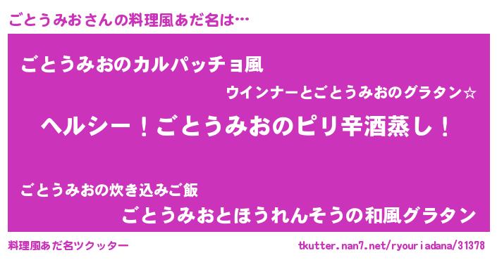 | 意味不明あだ名 | 『自称ごとうみお』『永久保存ごとうみお』 |