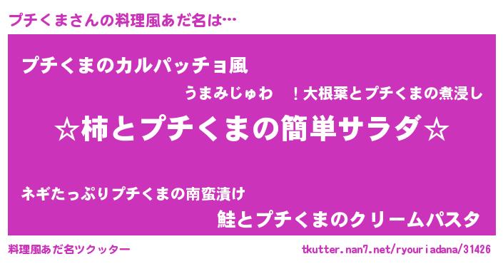 | 意味不明あだ名 | 『住所不定無職プチくま(84歳)』 |