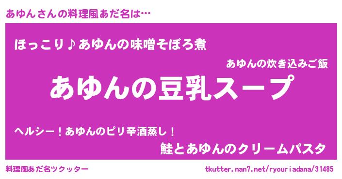 | 女子向けラノベタイトル風あだ名 | 『あゆんは平凡を望む』『闇のあゆん』 |