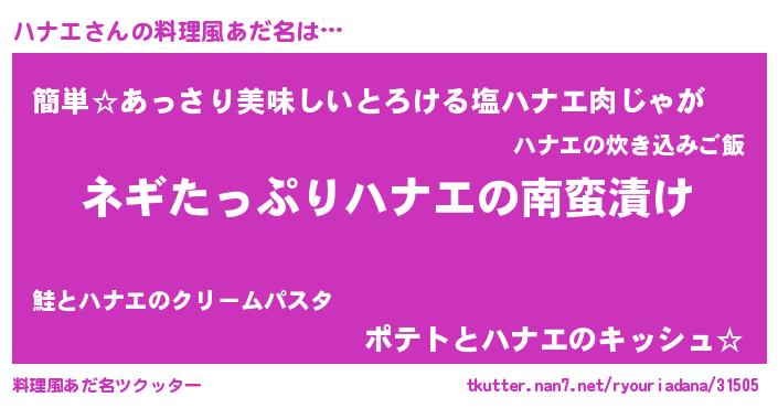 | ファンタジー風あだ名 | 『ハナフェル』『ハナディッシュ』 |