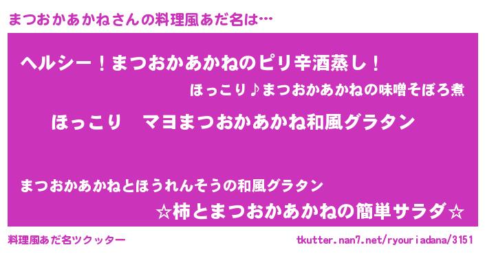 | 意味不明あだ名 | 『住所不定無職まつおかあかね(4歳)』 |