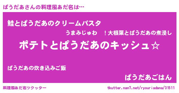 | ポケモン風あだ名 | 『ヒパウダア』『パックウザ』 |