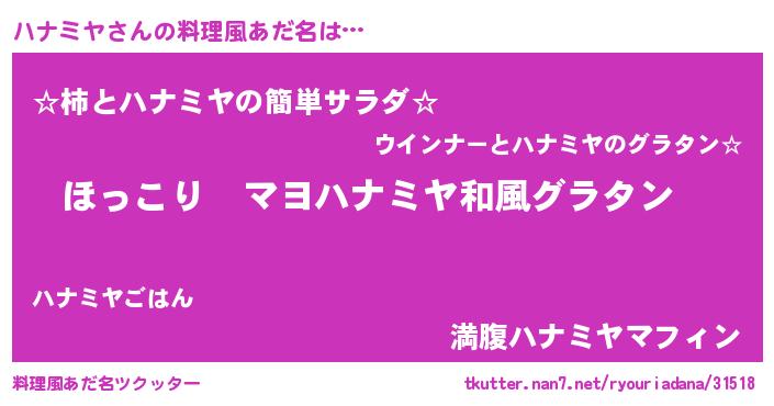 | ヘコむあだ名 | 『ハナミヤ(笑)』『牛乳』『ハナもー』 |