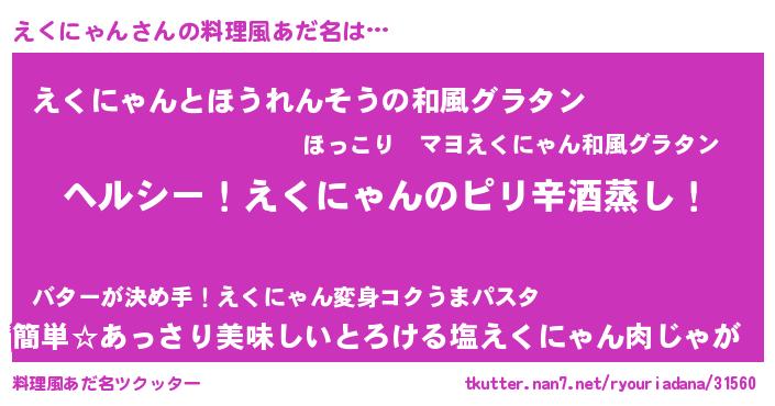 | ヘコむあだ名 | 『えくにゃん(苦笑)』『なまこ酢』 |