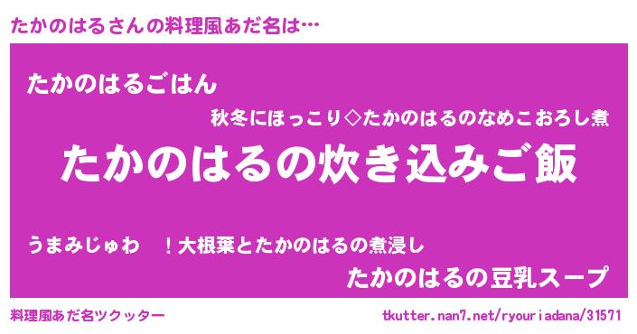 | 胡散臭い通販商品みたいなあだ名 | 『全米が絶賛したサプリメント…その名も「たかのはる」』 |