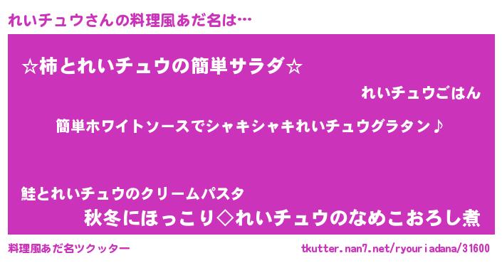 | 男性向けラノベタイトル風あだ名 | 『れいチュウの嫁は女の子じゃないと思った?』 |