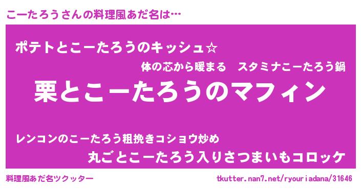 | 胡散臭い通販商品みたいなあだ名 | 『信頼と実績のサプリメント…その名も「こーたろう」』 |