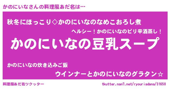 | 意味不明あだ名 | 『とにかく怪しいかのにいな』 |