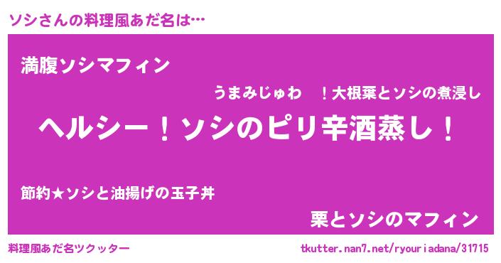 | 意味不明あだ名 | 『自称ソシ』『永久保存ソシ』 |