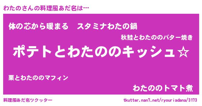 | ヒーロー風カッコイイあだ名 | 『幻影騎士ワタ』『ウルトラわたのマン』 |