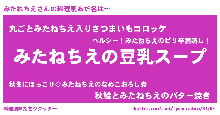 | 胡散臭い通販商品みたいなあだ名 | 『信頼と実績のサプリメント…その名も「みたねちえ」』 |