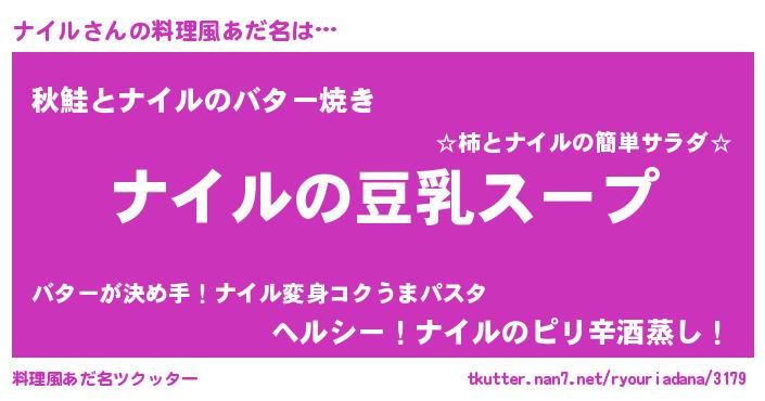 | 女子向けラノベタイトル風あだ名 | 『ナイルは平凡を望む』『ナイル恋絵巻』 |