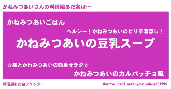 | 女子向けラノベタイトル風あだ名 | 『かねみつあいは平凡を望む』 |