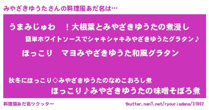 | ヘコむあだ名 | 『酢こんぶ』『みやにゅー』『みやを』 |