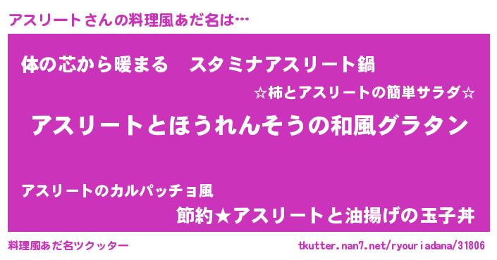| 胡散臭い通販商品みたいなあだ名 | 『世界が平和になる高級そうな皿…その名も「アスリート」』 |
