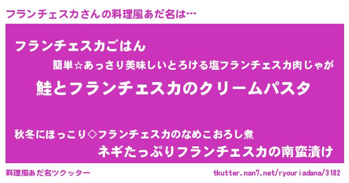 | 意味不明あだ名 | 『眠気覚ましガムフランチェスカ味』 |