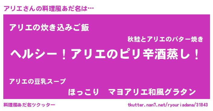 | ヘコむあだ名 | 『アリエ(小並感)』『アリぷりん』 |