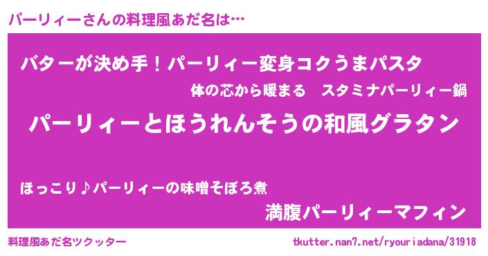 | 女子向けラノベタイトル風あだ名 | 『パーリィーの玉の輿計画!』 |