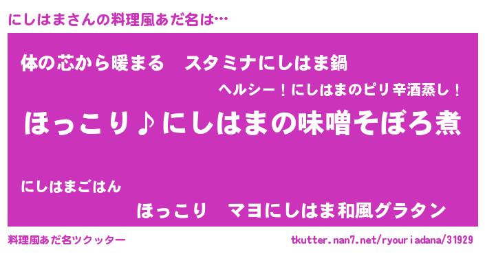 | ヘコむあだ名 | 『にしにー』『酢こんぶ』『にしを』 |