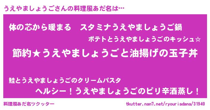 | ピコ太郎風あだ名 | 『ウコ四郎』『ピウ十郎』『ウエ十郎』 |