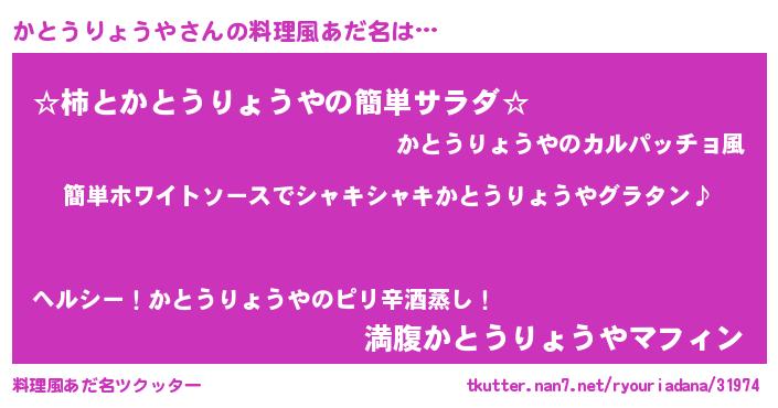 | 男性向けラノベタイトル風あだ名 | 『かとうりょうやの嫁は女の子じゃないと思った?』 |