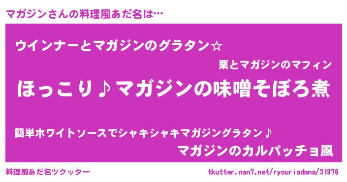| 男性向けラノベタイトル風あだ名 | 『マガジンの憂鬱』『魔弾の王とマガジン』 |