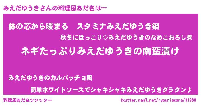 | 胡散臭い通販商品みたいなあだ名 | 『億万長者になれるブレスレット…その名も「みえだゆうき」』 |