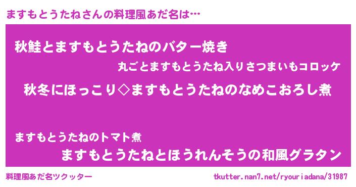 | 男性向けラノベタイトル風あだ名 | 『ますもとうたねに滅ぼされるだけの簡単なお仕事です』 |