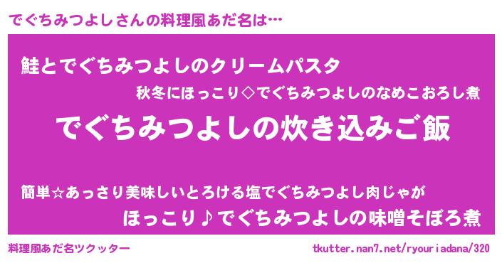 | ヒーロー風カッコイイあだ名 | 『慈愛の使者でぐちみつよし』 |