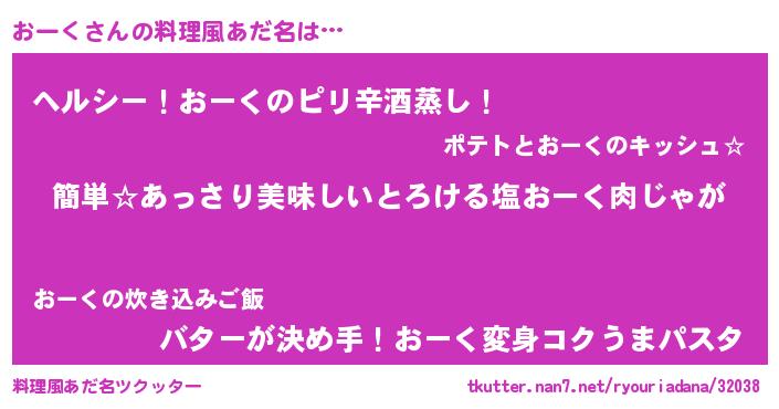 | 意味不明あだ名 | 『永久保存おーく』『自称おーく』 |
