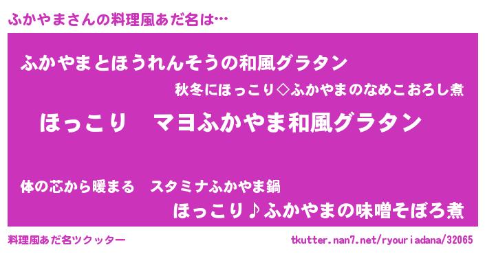 | 男性向けラノベタイトル風あだ名 | 『この素晴らしい世界にふかやまを!』 |