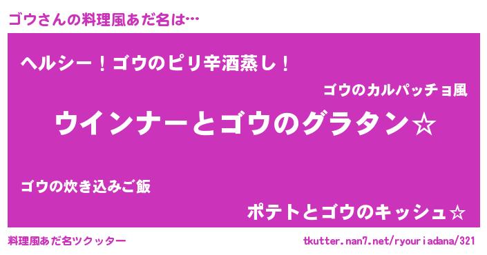 | ヘコむあだ名 | 『なまこ酢』『ゴウっ子』『ゴウ(笑)』 |