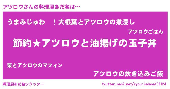 | 意味不明あだ名 | 『ペロリンアツロウ』『自称アツロウ』 |