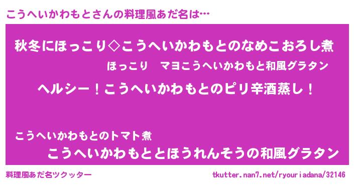 | 意味不明あだ名 | 『自称こうへいかわもと』 |