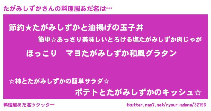 | 意味不明あだ名 | 『住所不定無職たがみしずか(5歳)』 |