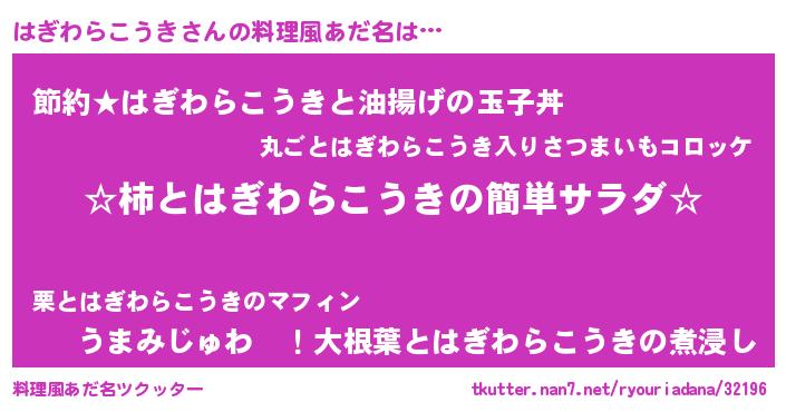 | ヘコむあだ名 | 『はぎっふぃ~』『つくし』『はぎを』 |
