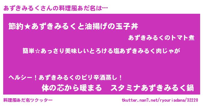 | 意味不明あだ名 | 『永久保存あずきみるく』 |