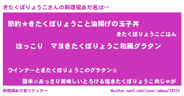 | 女子向けラノベタイトル風あだ名 | 『悪役きたくぼりょうこに転生したようですが、知った事ではありません』 |