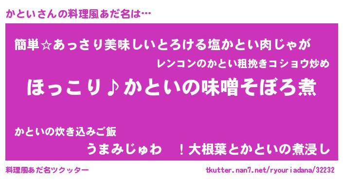 | ファンタジー風あだ名 | 『カトフェル』『カトディッシュ』 |