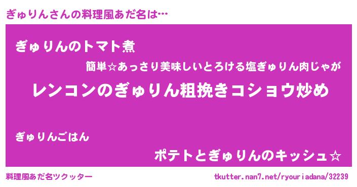 | ヘコむあだ名 | 『ぎゅっぺ』『ぎゅりん(遠い目)』 |