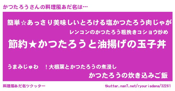 | 男性向けラノベタイトル風あだ名 | 『カツタロウアートオンライン』 |