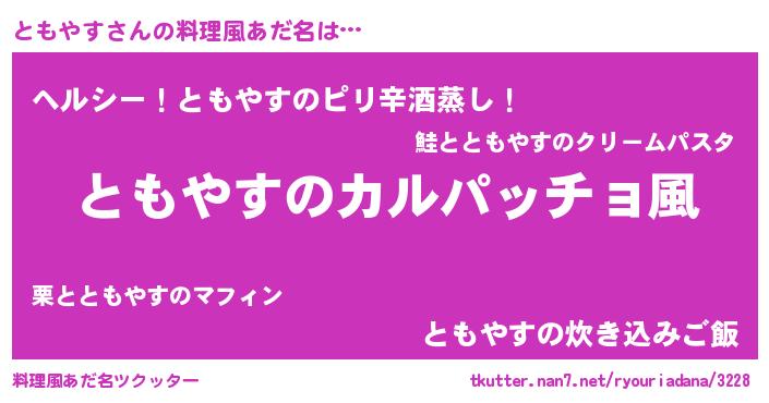 | 意味不明あだ名 | 『住所不定無職ともやす(89歳)』 |