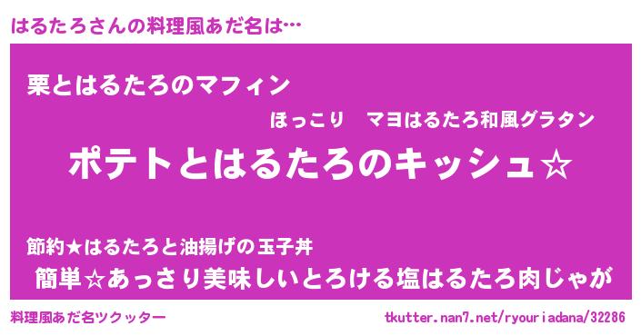 | 男性向けラノベタイトル風あだ名 | 『はるたろの嫁は女の子じゃないと思った?』 |