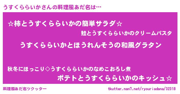 | 男性向けラノベタイトル風あだ名 | 『転生したらうすくららいかだった件』 |