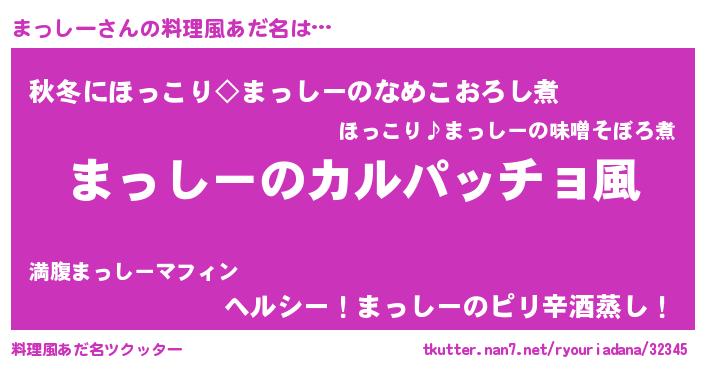 | 男性向けラノベタイトル風あだ名 | 『魔弾の王とまっしー』『まっしーの憂鬱』 |