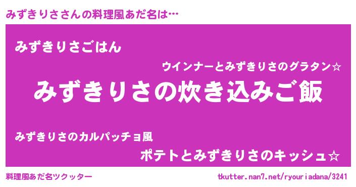 | 胡散臭い通販商品みたいなあだ名 | 『全米が絶賛したサプリメント…その名も「みずきりさ」』 |