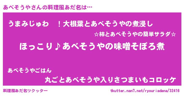 | ヒーロー風カッコイイあだ名 | 『スーパーアベソウヤ』『仮面アベダー』 |