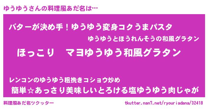 | ピコ太郎風あだ名 | 『ユユ太郎』『ピコユ郎』『ユウ十郎』 |