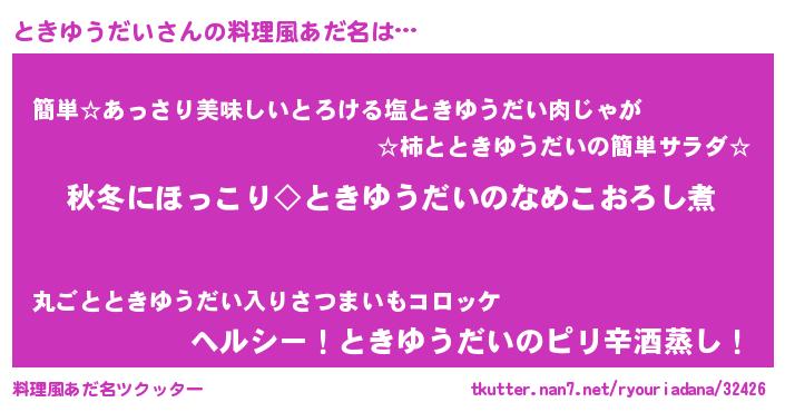 | ヘコむあだ名 | 『ときゆうだい(震え声)』『ときお』 |