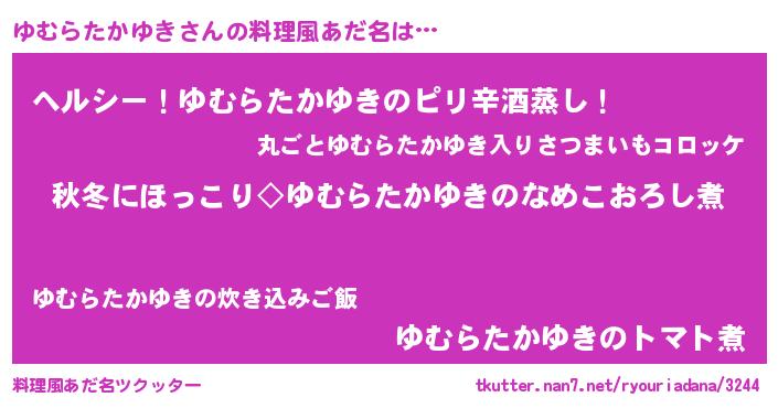 | ヘコむあだ名 | 『ゆむらたかゆき(遠い目)』『ゆむっぺ』 |